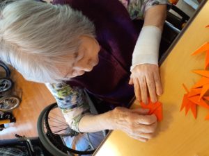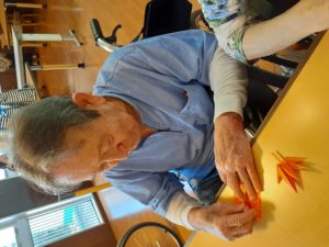 ということで、本日の折り紙教室は?もみじ?の葉っぱを作りました。