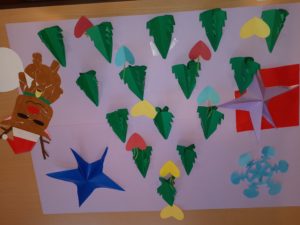 前回に引き続き画用紙を使用してクリスマスツリーを作りました‼