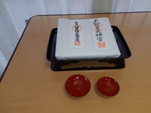 今年もコロナ禍で外出が出来ない為、副施設長が代わりに牧落神社へ参拝に行き、お札をもらってきました。