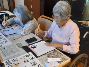 書道は楽しみにされている方が多く、参加された皆様、真剣に書道をされています?