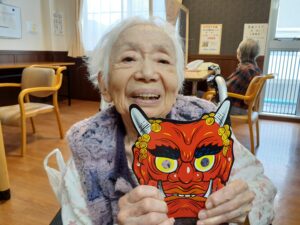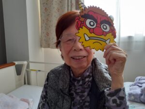 皆様鬼のお面を付けたりし、写真撮影をさせて頂きました。