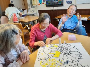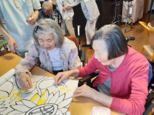 今回はいつもの塗り絵ではなく、貼り絵をレクリエーションで行いました?