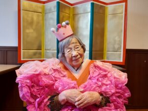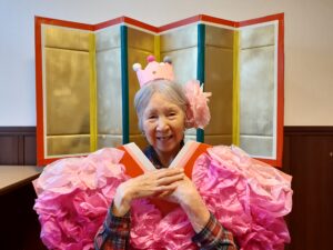 女性はお雛様で男性はお殿様の仮装をしております。