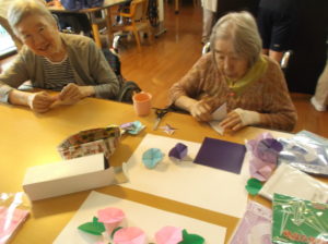 皆様折り方を覚えるのがとても早く、紫色・水色・ピンク・青など、