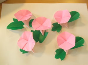 色とりどりの朝顔を沢山折って下さいました。