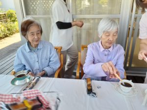皆さんに秋風を感じて頂き、美味しいお菓子とコーヒーで楽しんで頂こうと、ウッドデッキにて喫茶を開催しました☕