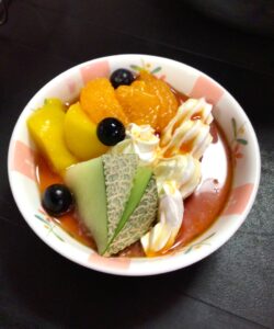 デザートのプリンアラモードも厨房で手作りです♪