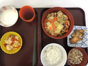 本日のランチは海鮮焼きそばでした♪イカ、エビ、アサリ、お野菜もたっぷり