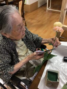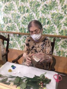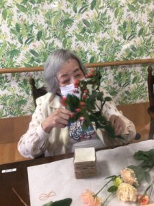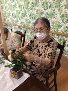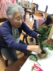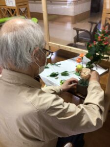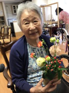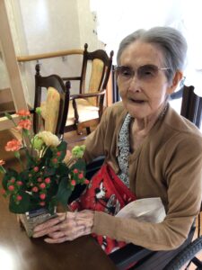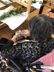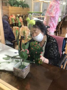 フラワーアレンジメントは毎月開催しています。参加費はお500円(お花代)です。