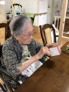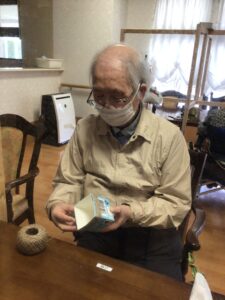 まずは花器を作っていただきました。牛乳パックに夏らしく麻ひもをクルクル
