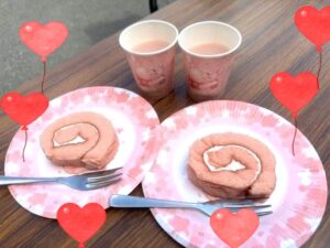 帰ってきたら桜色のロールケーキと桜ラテが待っておりました💗