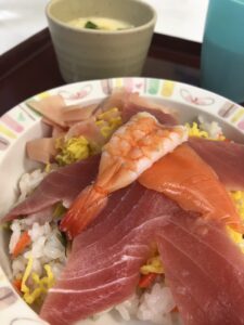 2日の昼食は海鮮ちらし寿司こちらもゲスト様に人気のメニューです