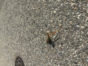 大きなカマキリがいました。益虫なので、花壇の番をお願いしました?