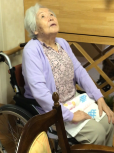 背中を向けておられても、聞きなれた音楽に体が自然と動く様です?