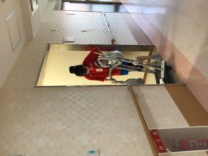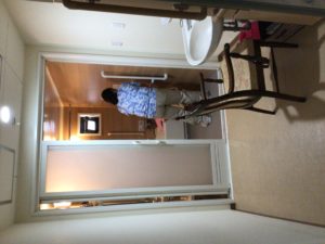 ベテランスタッフのOさん、お風呂の前に掃除の用意。