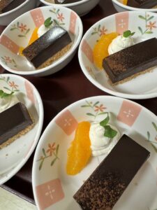この日のおやつはキッチンのシェフ特製チョコレートケーキ![]()