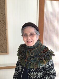 なんとこのデザインのお洒落なショールもカーディガンもご自分で編まれたそうです