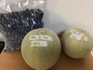ずっしり重いメロンと、粒の大きなブルーベリーです?