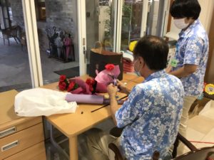 前日もお花の準備、、、こうかなぁ??こっちの方が可愛いかも!?