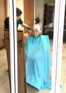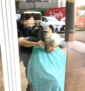 皆様順番に交代しながらカットやお顔剃りをしていきます。