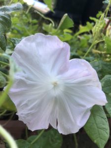 ピンクと紫に近い色の花が毎日順番に咲いています。