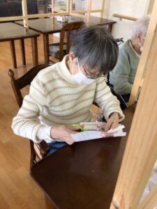 5月のカレンダーも更新しています。母の日に手芸レクリエーションや