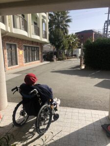 デイサービスあ・マノマノの前でゲスト様をお出迎え