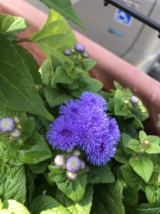 白い控えめなお花は勿忘草。紫の花もフワフワしていて可愛いです💓
