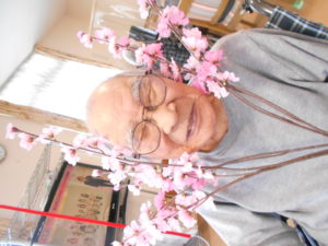 これでは寂しいので、桜の枝(本物ではありません…)にて写真を撮りました。