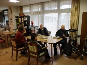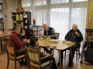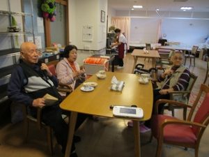 コーヒーとお茶菓子で 希望される ゲスト様にご自由に参加していただいてます