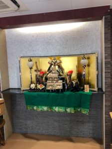 という事で、ちょっと早いですが、五月人形を玄関前に飾らせて頂きました?