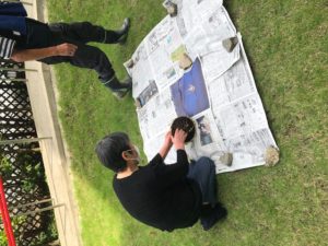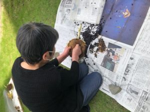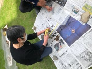 「こんなんは、思い切ってするのがコツ!」と、慣れた手で大きなひまわりの花から種を取りました?