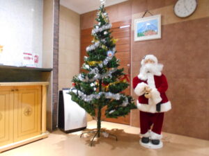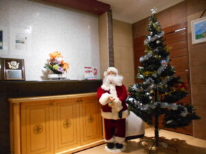 ツリーと共にサンタさんがお出迎えです🎅