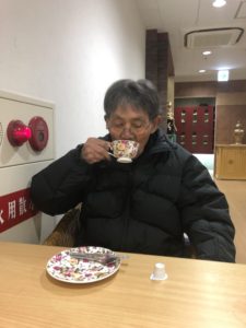 1階 玄関前にて 挽きたてコーヒーを提供しております?