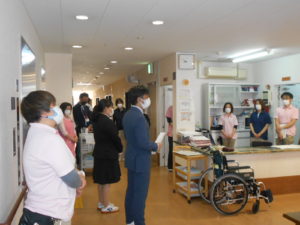 毎年、法人で入社式を行いましたが、コロナの影響もあり、各施設にて行うこととなりました。