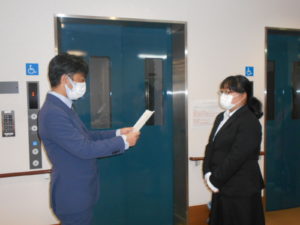 まずは辞令交付‼朝のミーティングの前にスタッフに自己紹介してもらい、辞令交付を行いました。