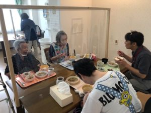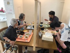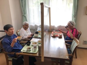 施設長がテーブルにつくと 皆様 笑顔になってます?