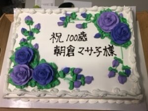本日、100歳になられたゲスト様、お祝いをさせて頂きました