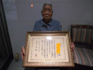 総理大臣からの 記念賞状です