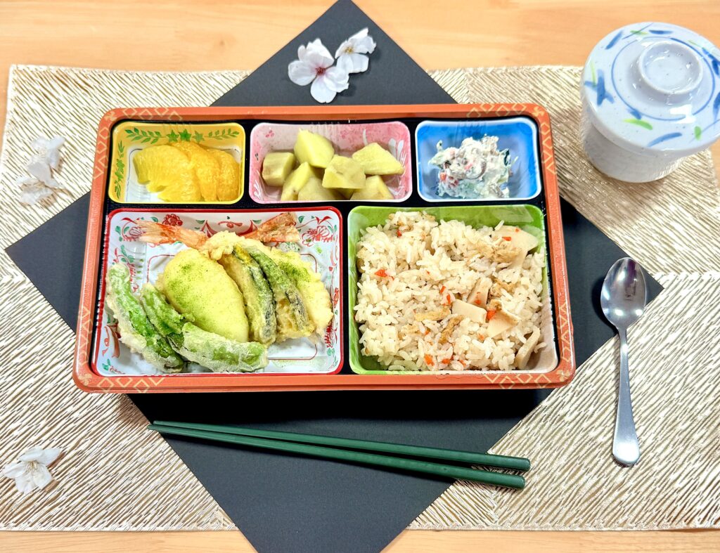 たけのこご飯 季節の天ぷら 茶碗蒸しなど 春の味覚に舌鼓
