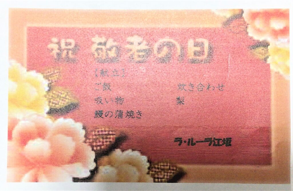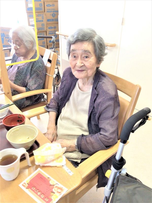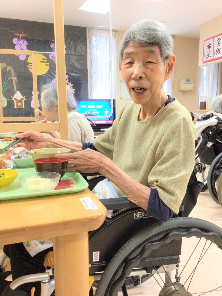 敬老の日の昼食 入居者の皆さんは笑顔に包まれ 和やかに過ごされました。