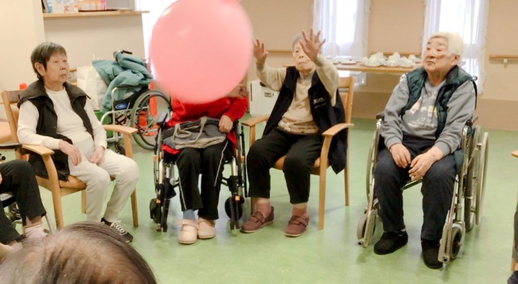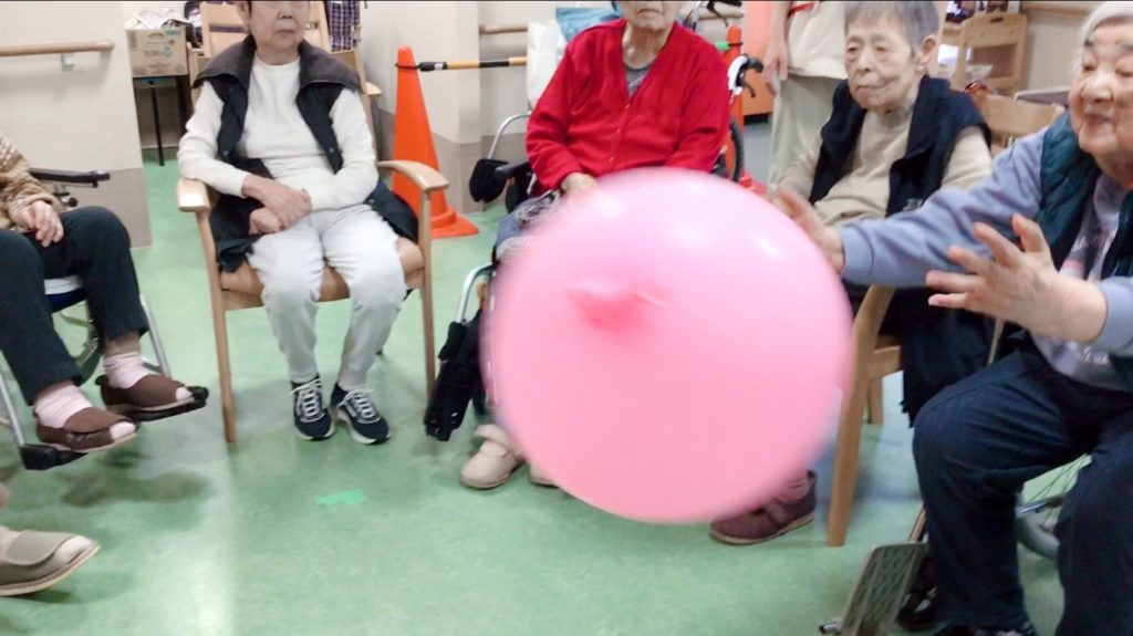 今月は、少し大きな風船??を使って 楽しみながら 身体を動かしていただきました?♬