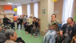 豆まき前のウォーミングアップ!!として風船バレーをしたところ