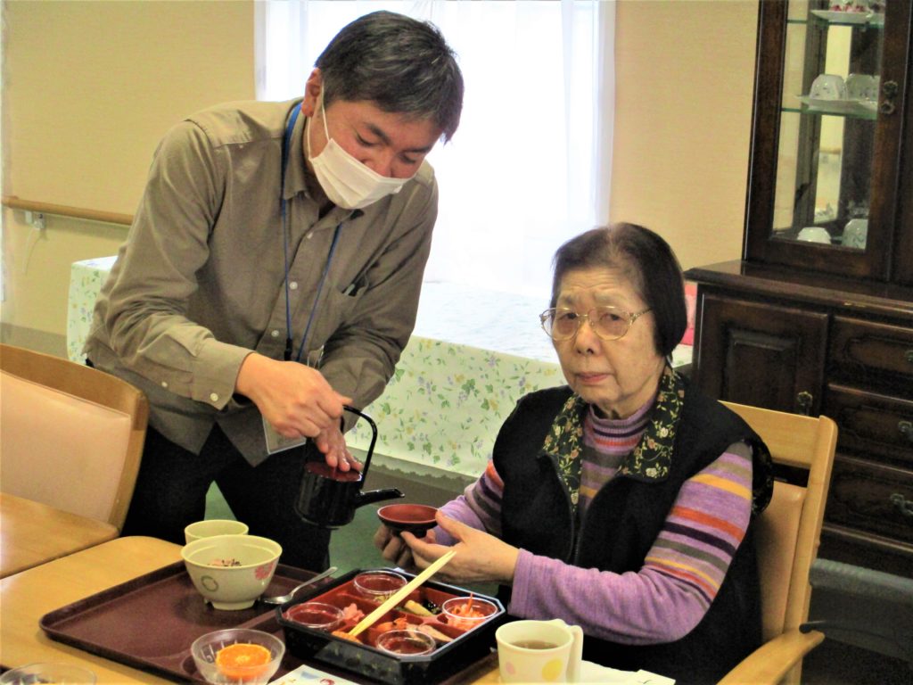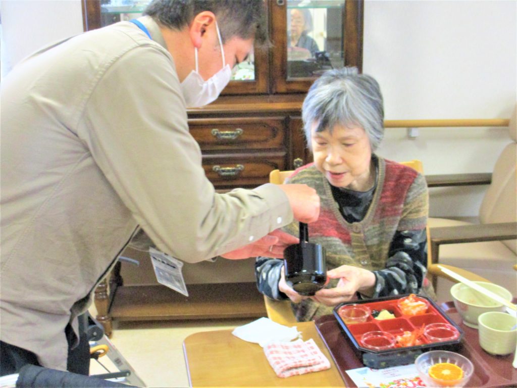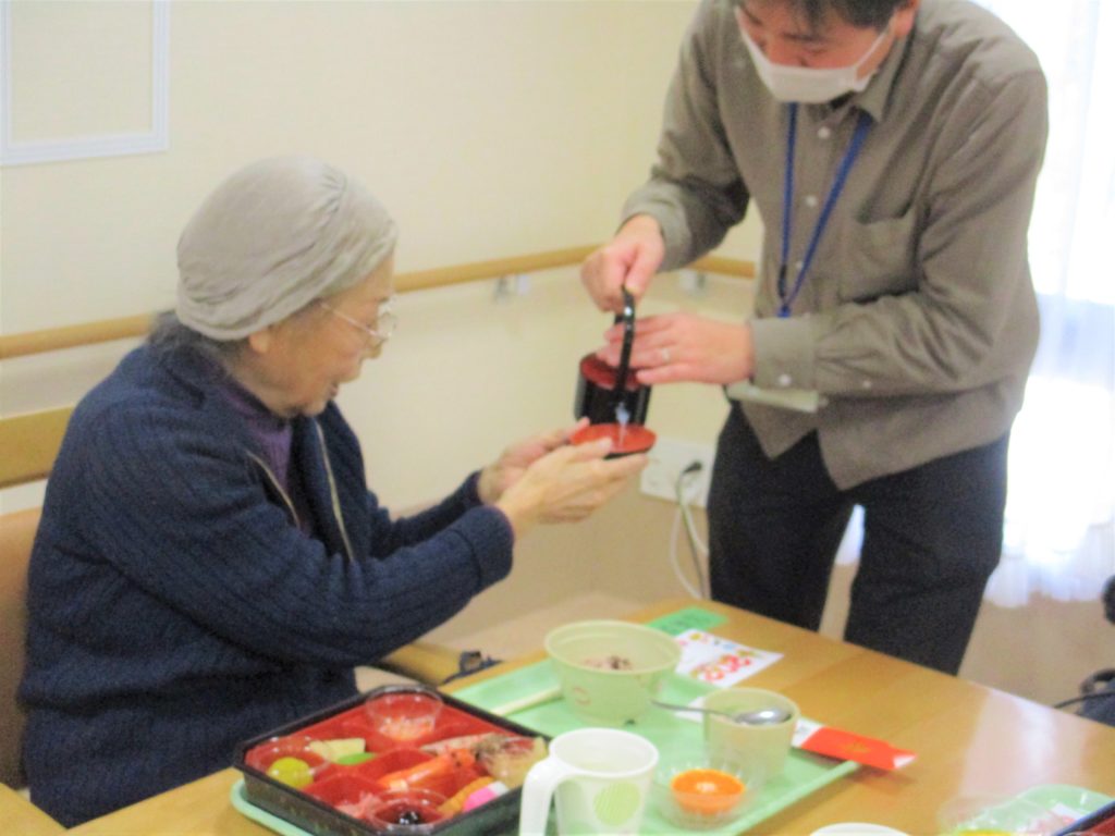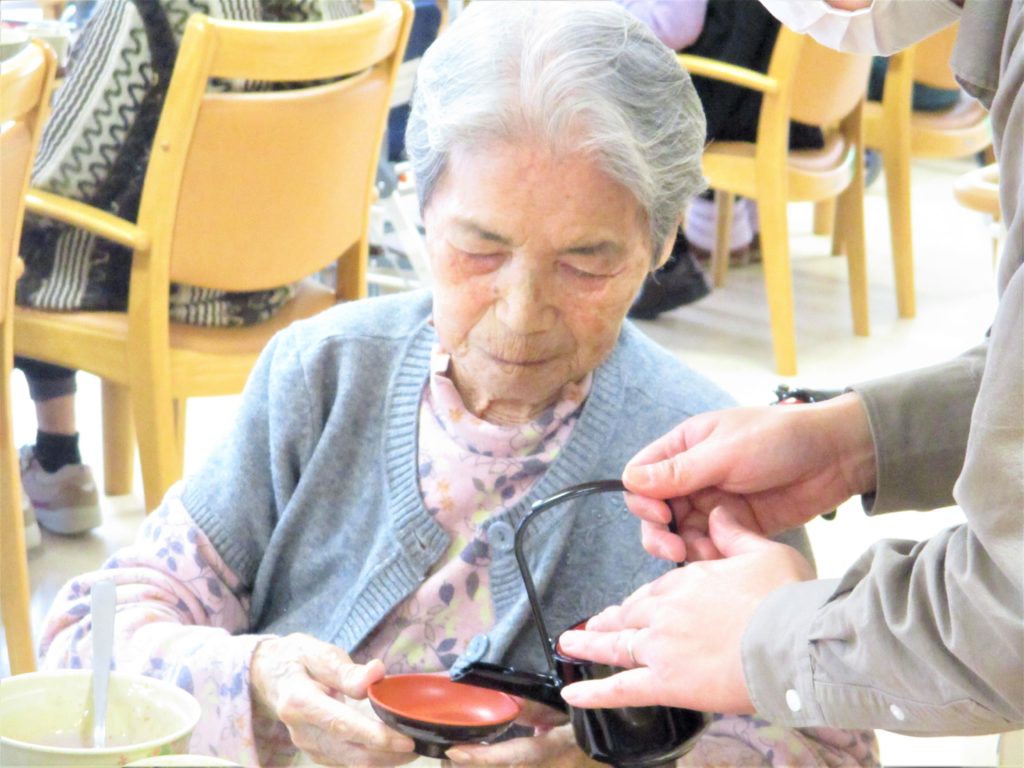 新年明けまして おめでとうございます 本年もどうぞ宜しくお願いいたします? ラ・ルーラえさかでは 長寿を願って おせちと。。 お屠蘇の代わりに 『甘酒』を 召し上がっていただきました? こちらが『ラ・ルーラおせち』です。 『お味はいかがでしょうか。』 新年のあいさつを交わしながら 『甘酒』をすすめます 『私、甘酒初めて!(^^)!』 みなさまにとって 幸多き年でありますように⛩