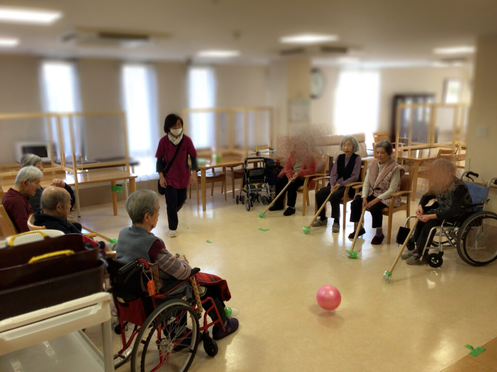 ボールを追いかける 眼差しが真剣です ゲートボールの経験が生かされ 上手にボールを打つゲスト様