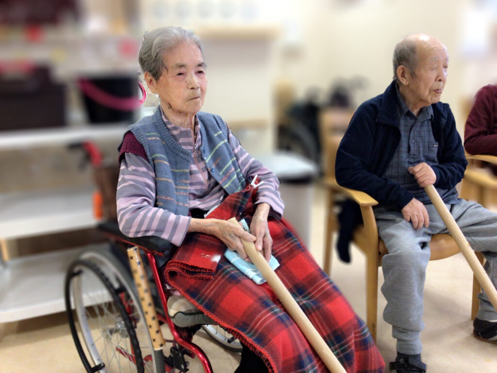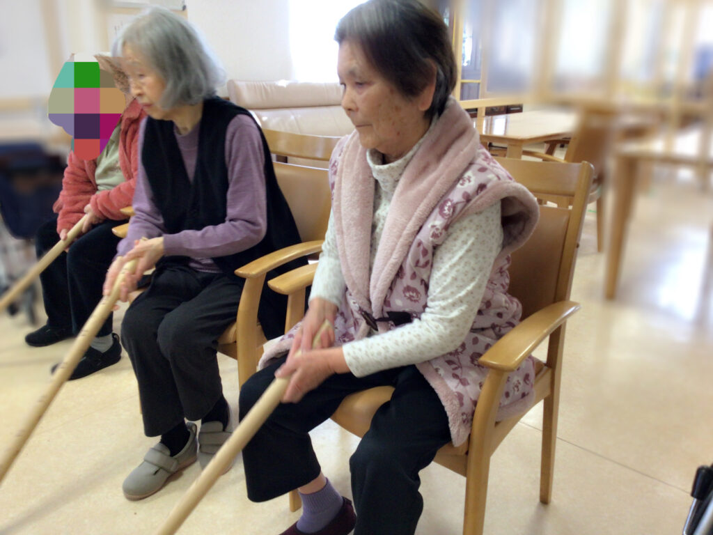 今回のレクは 椅子に座って 『棒サッカー』