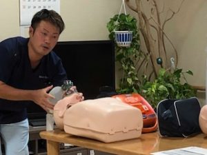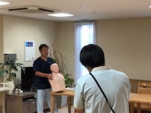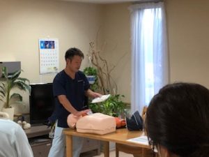 緊急時の対応をしっかり行えるよう講師の方からのお話をスタッフも真剣に聞き入っおりました