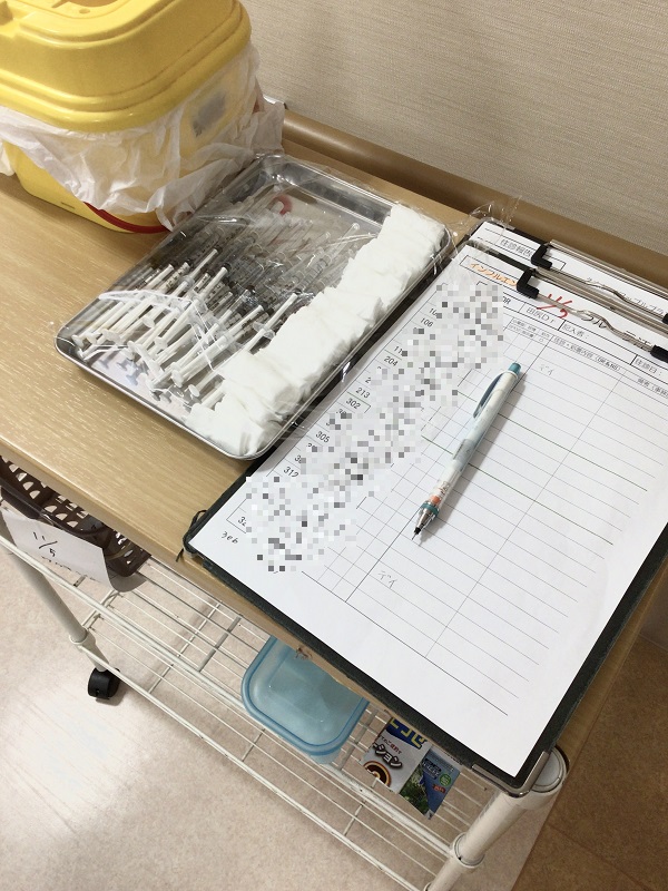 今日はインフルエンザの予防接種日 ナースも朝から準備に励みます
