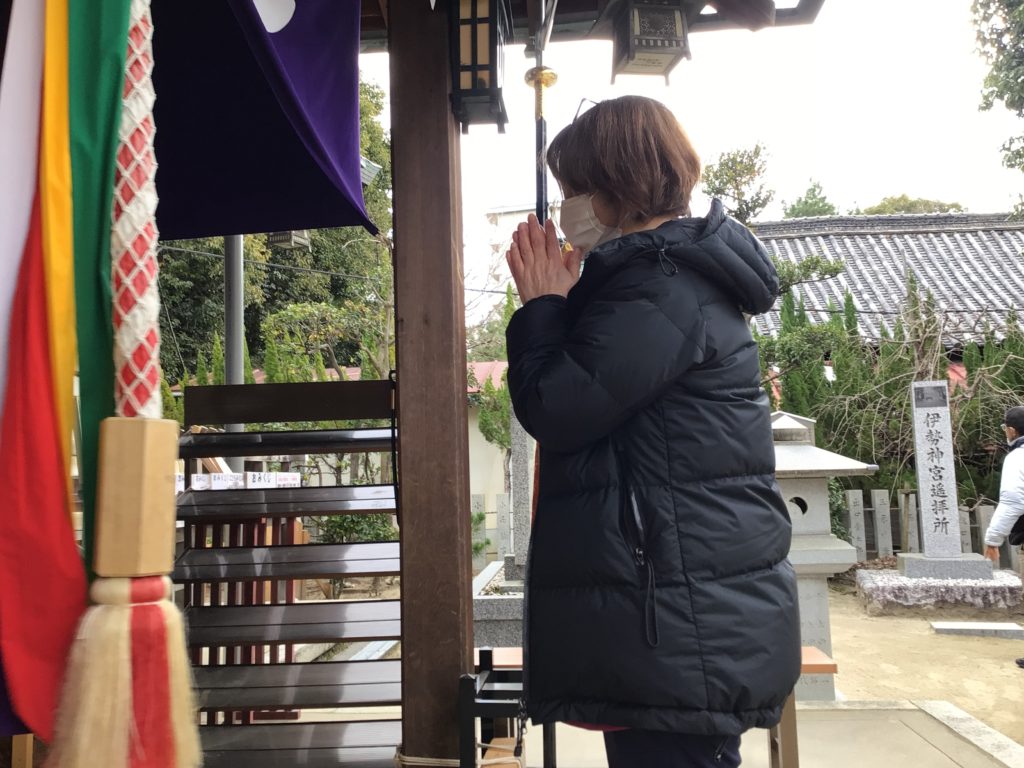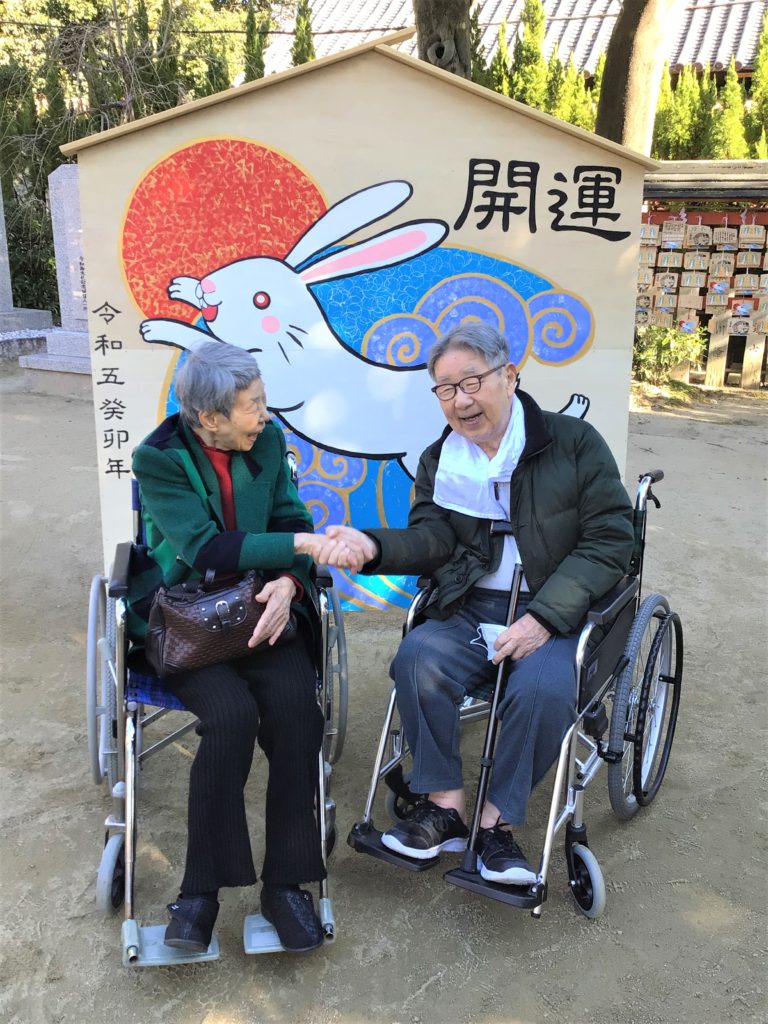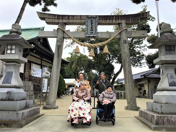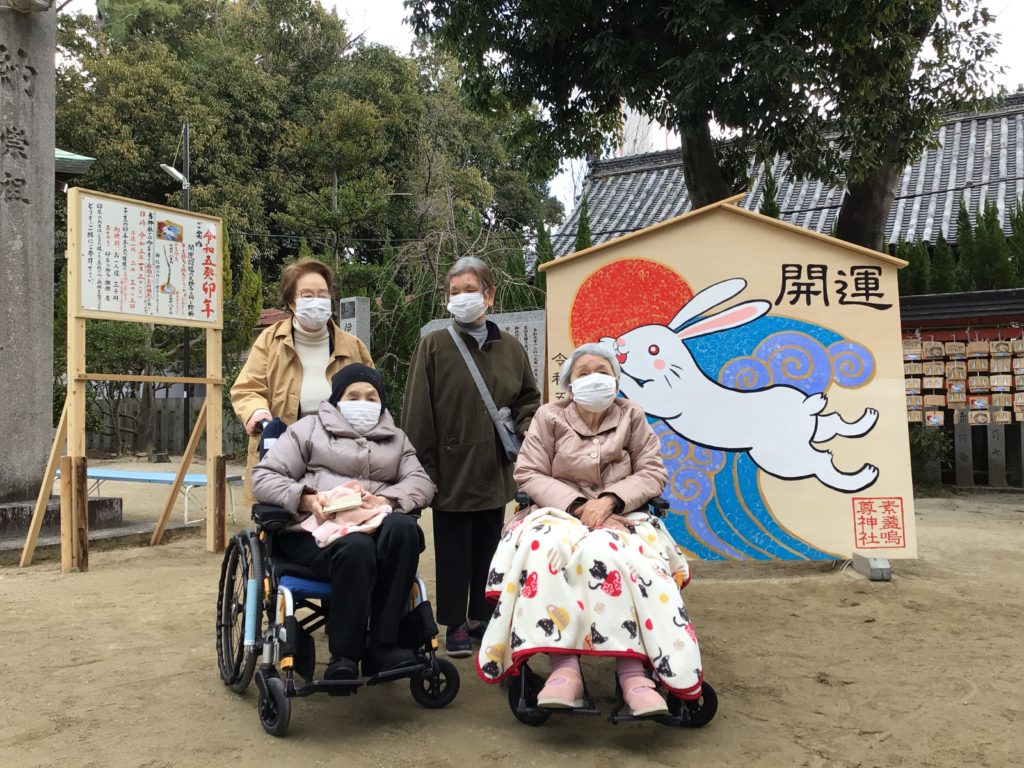 うさぎ?の絵馬で記念撮影 鈴の前で お賽銭を入れて 願い事をされていました 鳥居の前で お天気も良かったので 神社⛩内をお散歩 『みんなが幸せになりますように』 スタッフもお祈りします