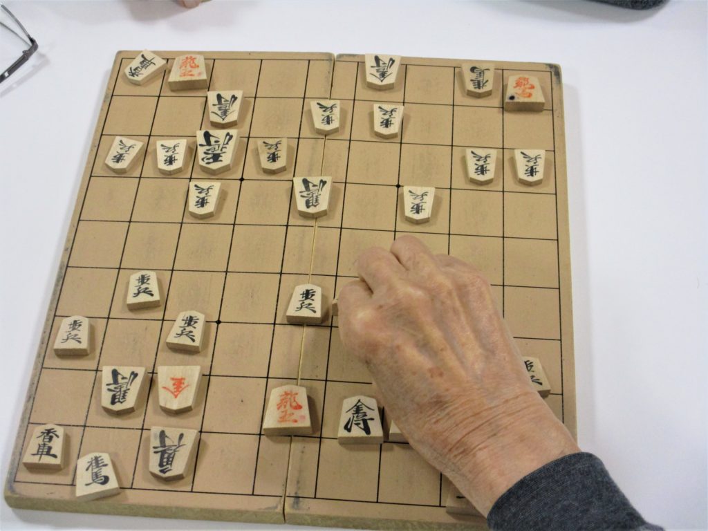 まずは、感染対策をしながらゲスト様に将棋を 楽しんでいただきました?
